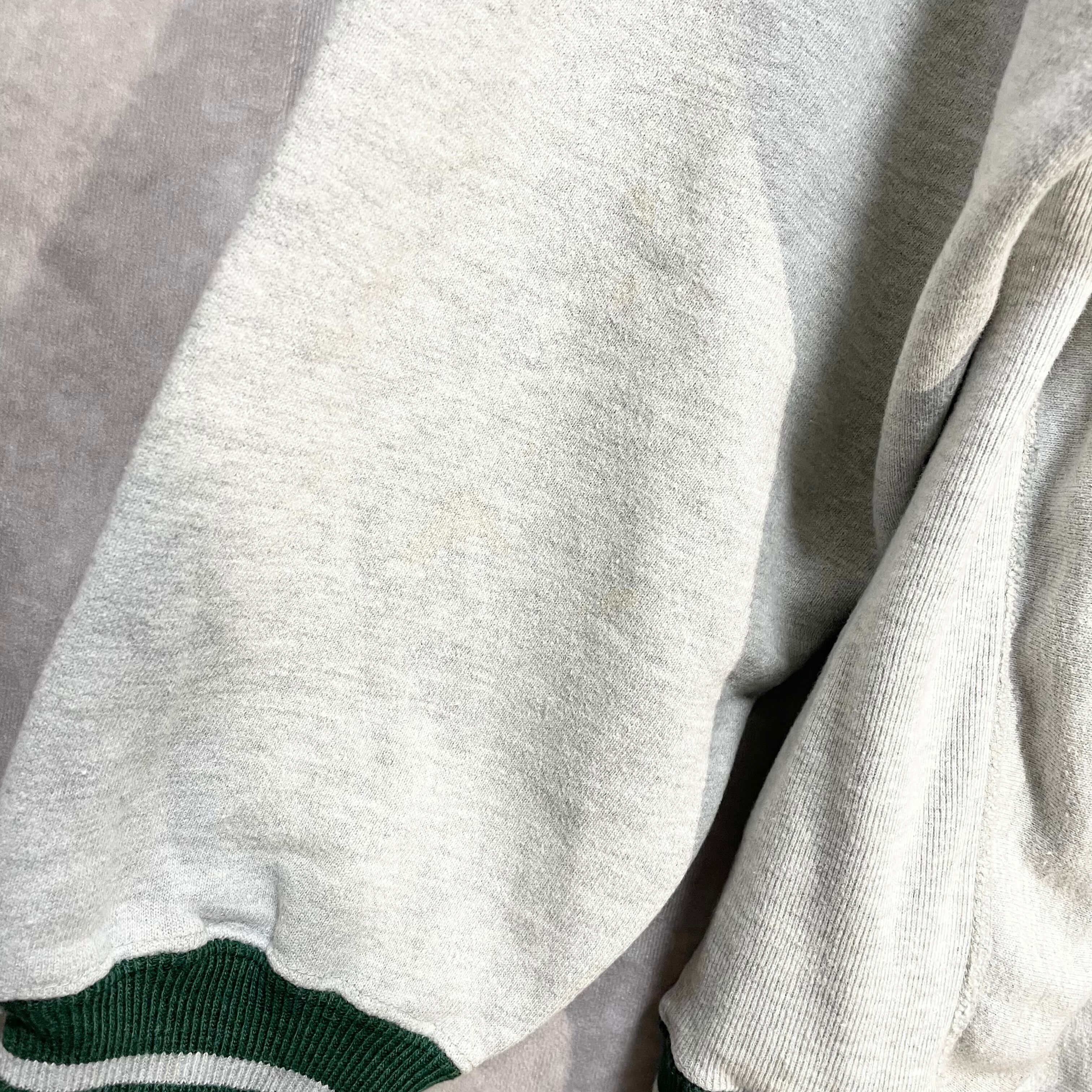 全体的に見ても珍しい逸品ですが、特に首・袖・丈に今流行のグリーンのリブが特徴的な90sのリバースウィーブです