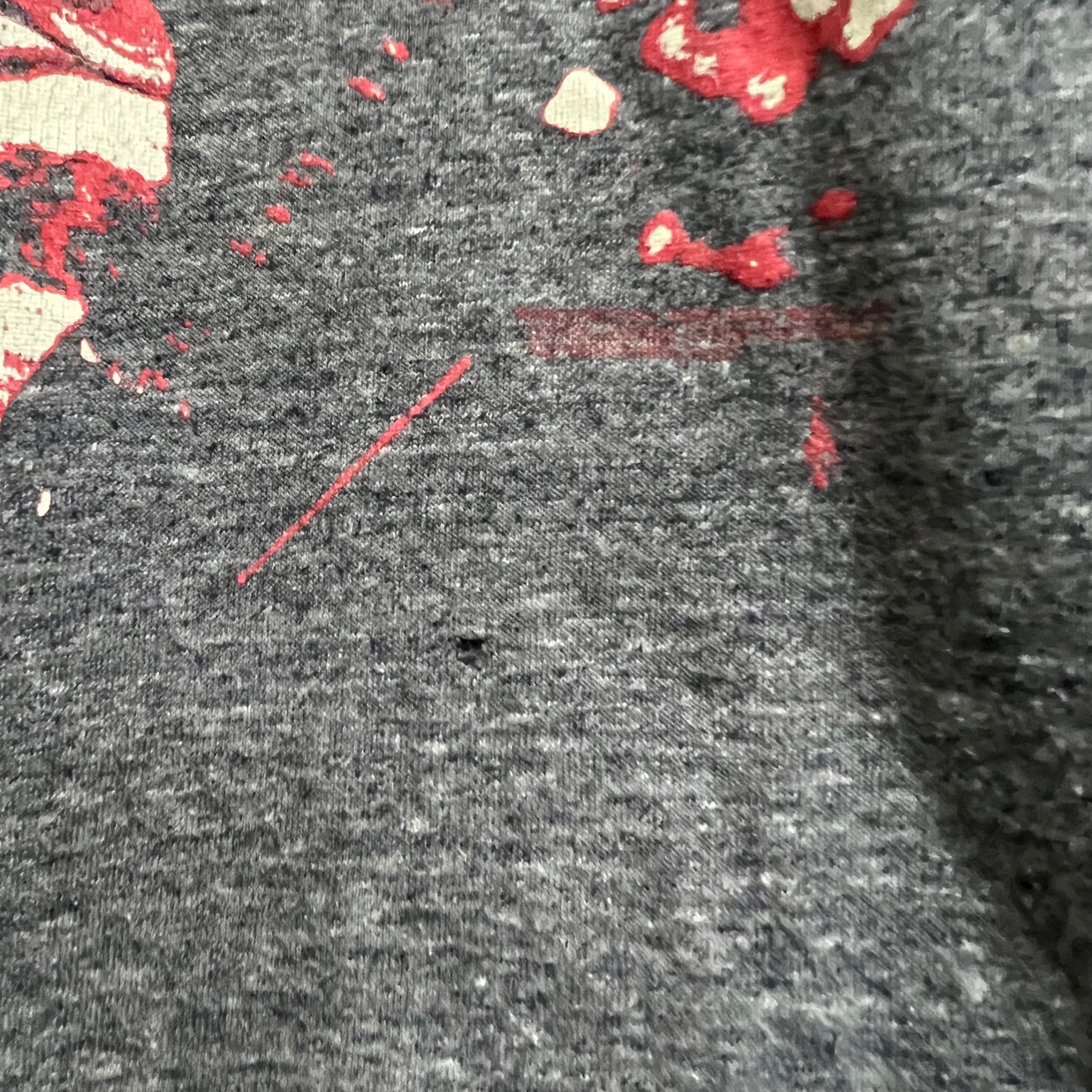 下腹部に穴があって古着らしいアイテム。