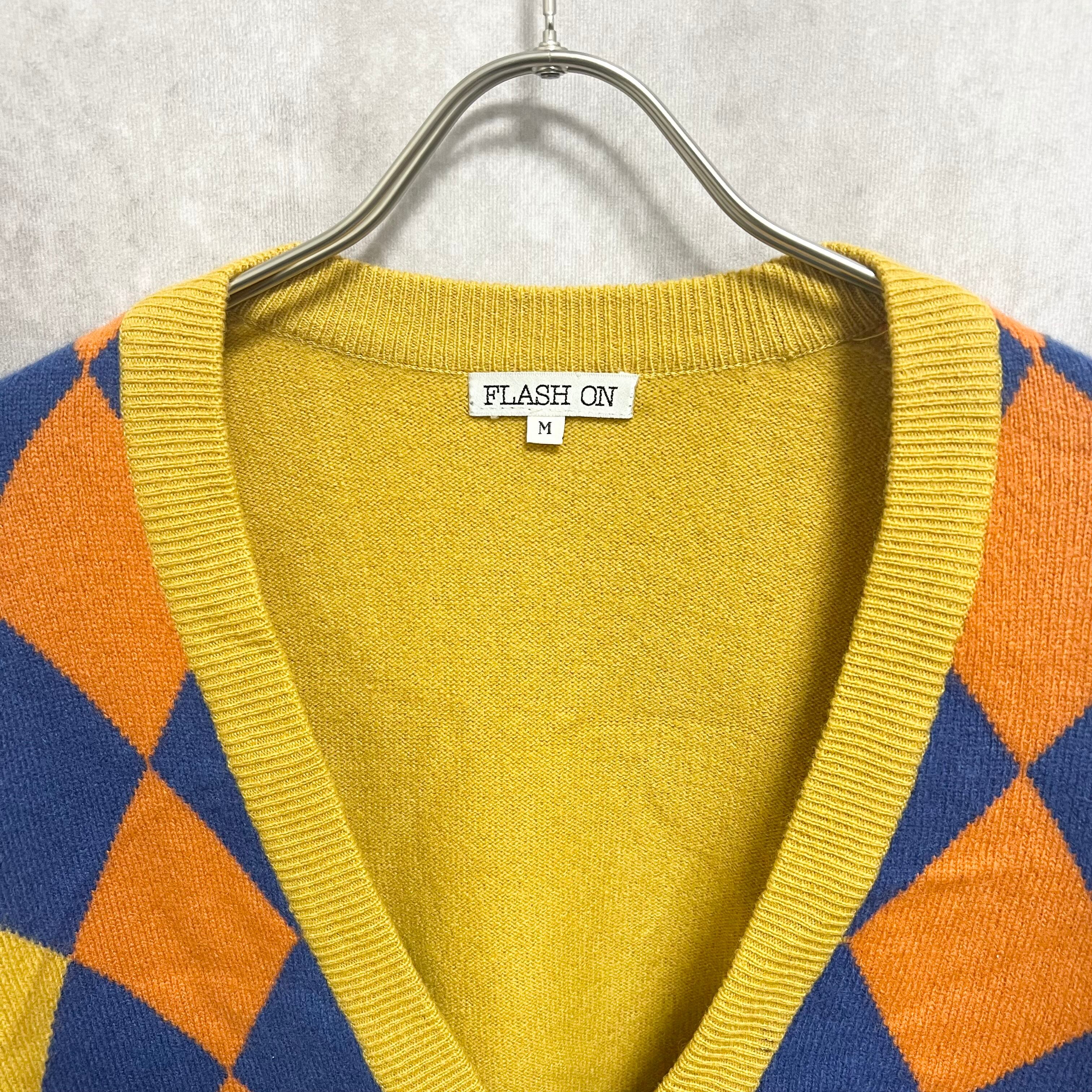 Design knit argyle pattern cardigan SIZE M