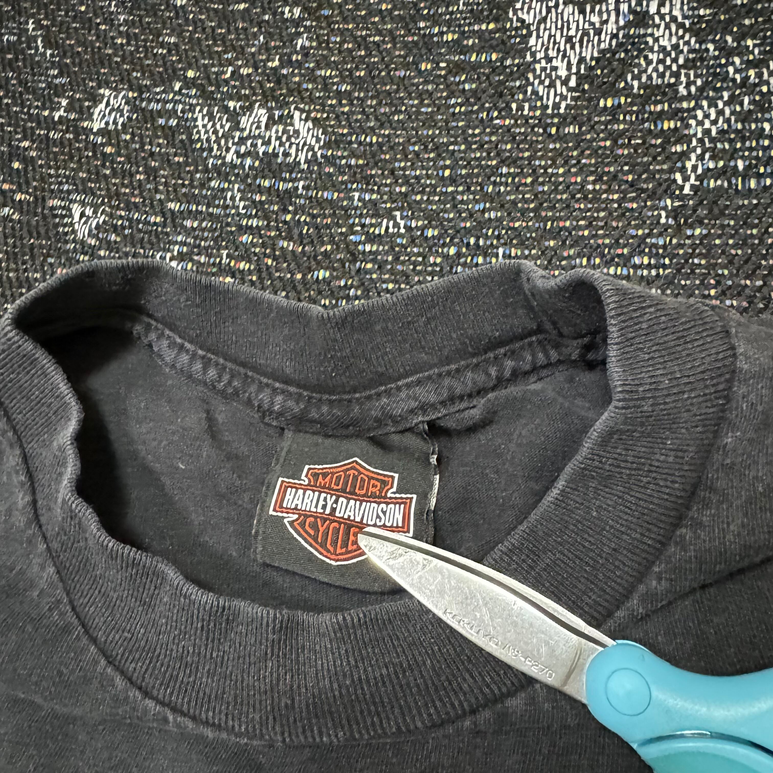 フロントはハーレーのロゴ、バックにはバイク。