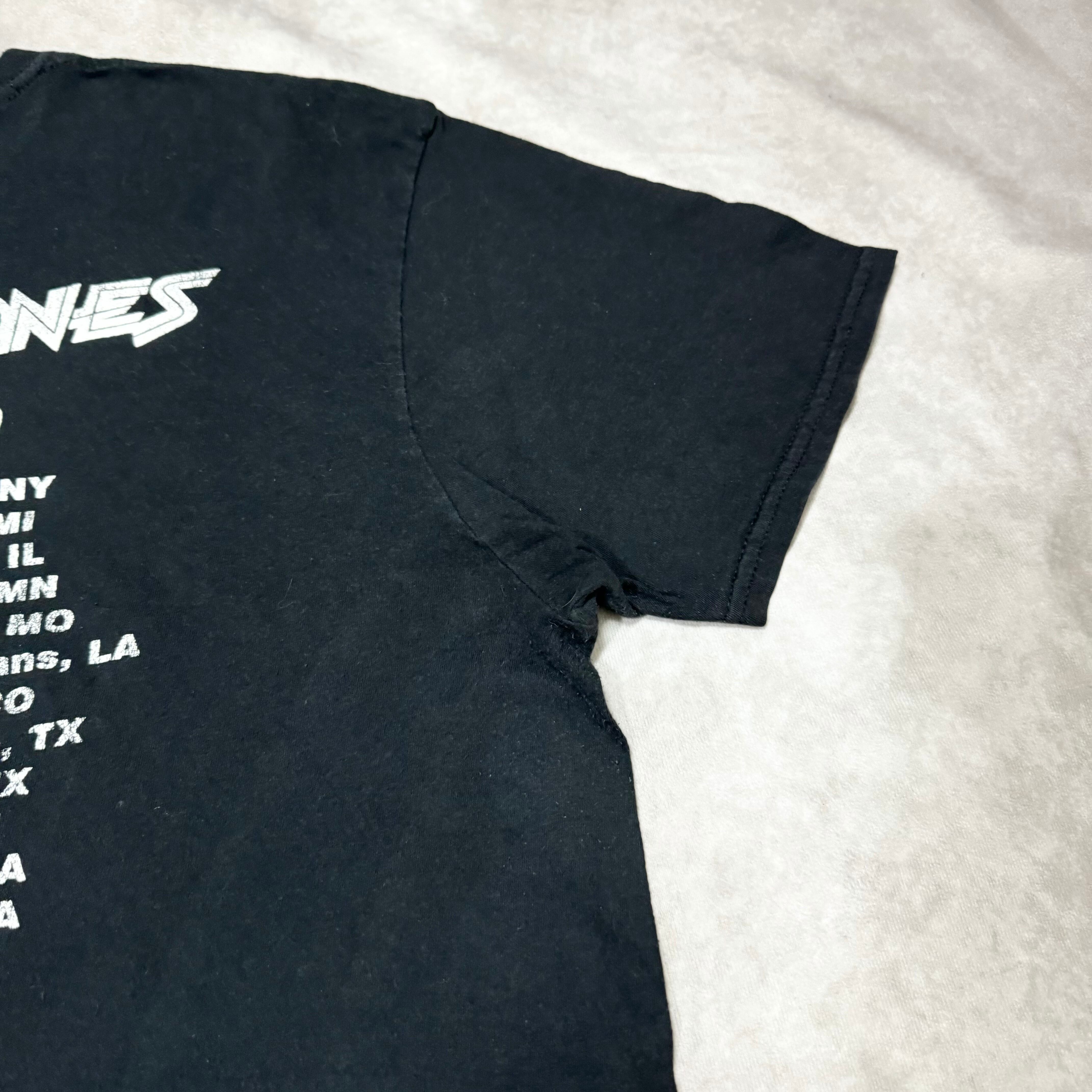 フロントが汚れていてロックらしいバンドTシャツ。