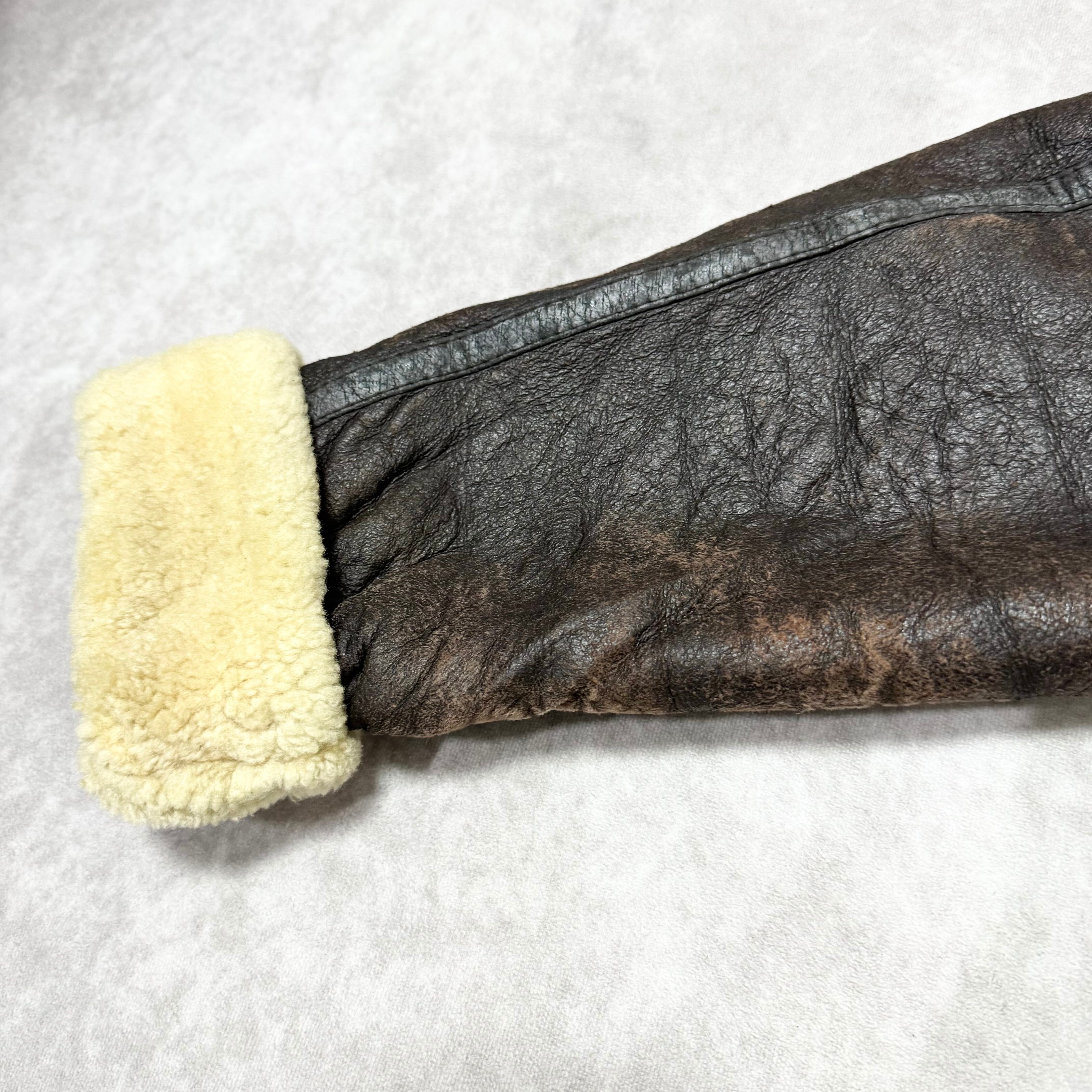 深いブラウンのムートンジャケット。